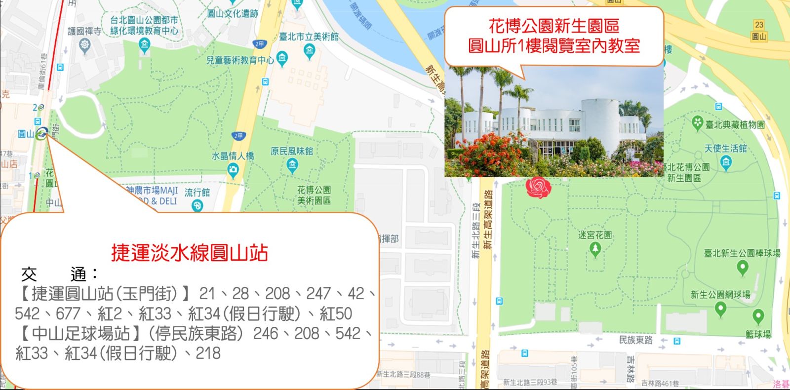三、 上課地點:臺北市中山區新生北路3段105號(新生公園綠化教室)